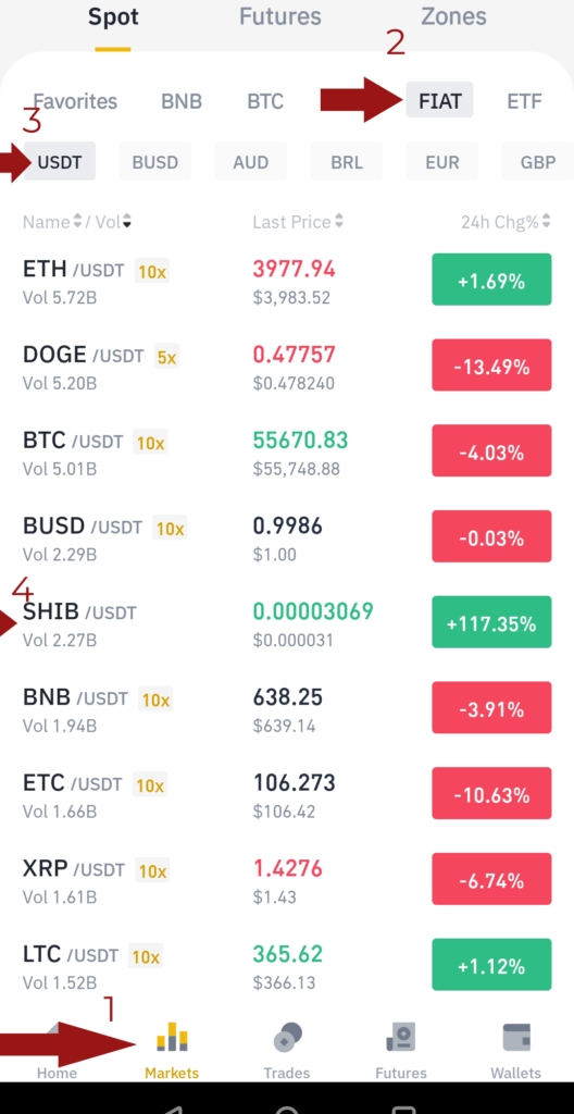 Devi avere USDT per acquistare SHIBA INU da APP Binance